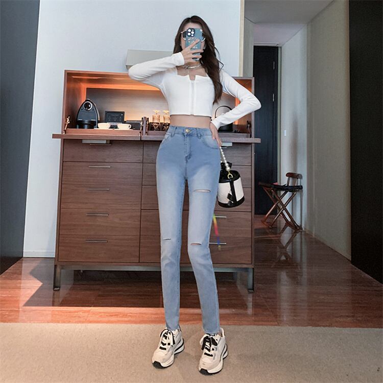 レースアップ スリム ロングパンツ ジーンズ ペンシルパンツ スキニーパンツ