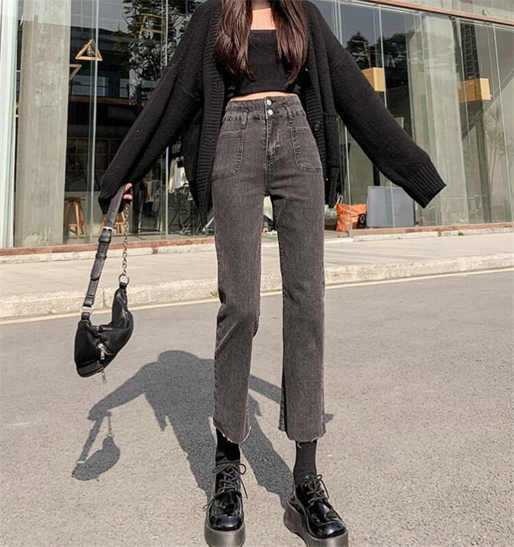ハイウエストスリム ストレートパンツ ジーンズ ゆったりする 九分丈パンツ