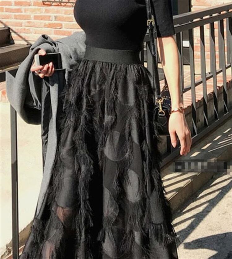 リピーターが多い オーバーサイズ a字 スリム カジュアル ハイウエスト フリンジ ロングスカート
