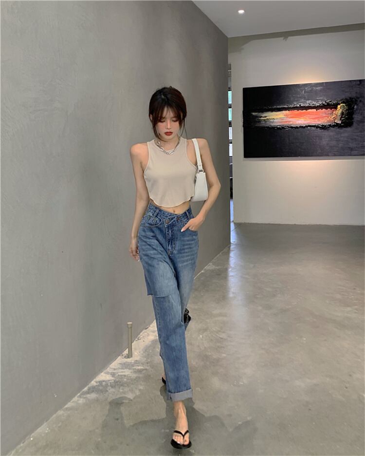 韓国ファッション 韓国版 破れ シン ジーンズ ゆったりする ファッション カジュアル