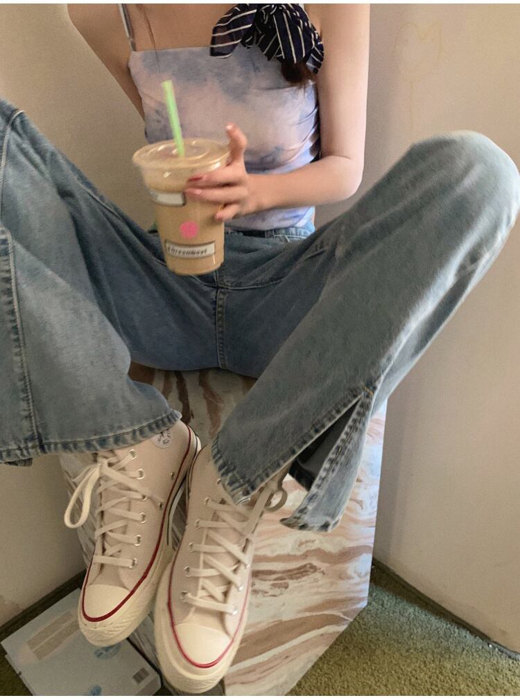 軽やかに、そして華やかに 激安セール ゆったりする ハイウエスト スプリット ワイドレッグ ジーンズ