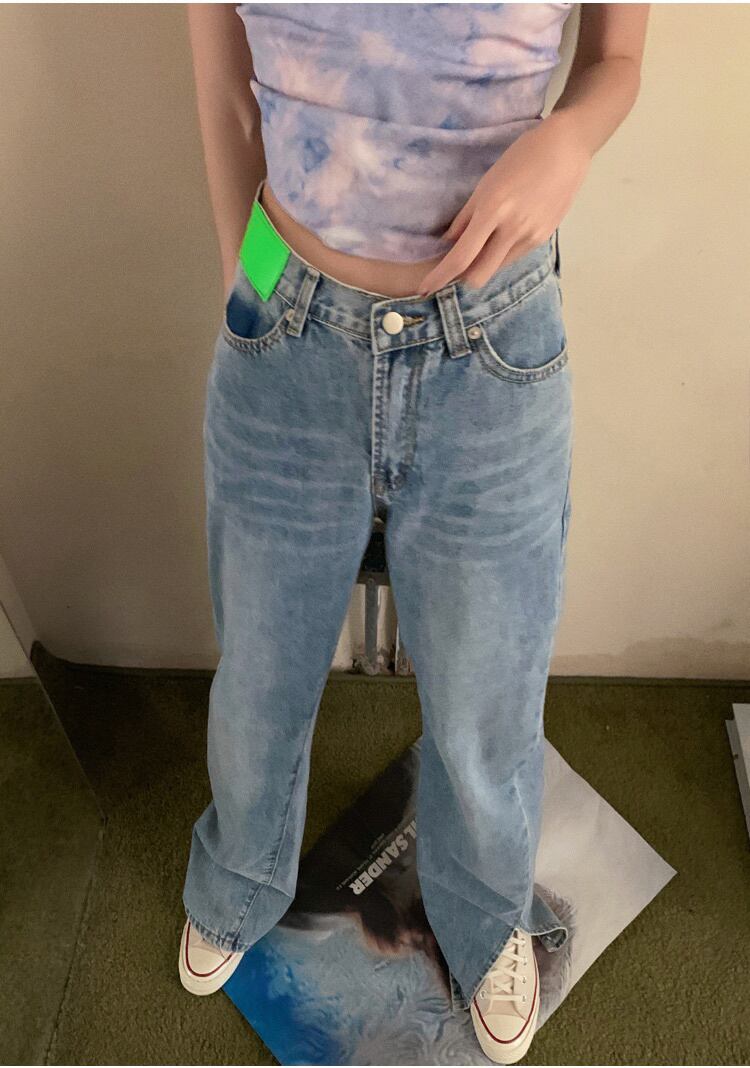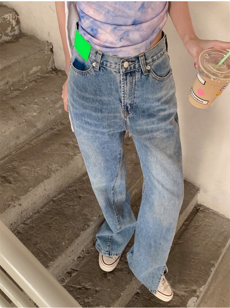 激安セール ゆったりする ハイウエスト スプリット ワイドレッグ ジーンズ