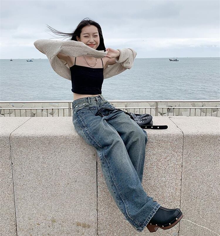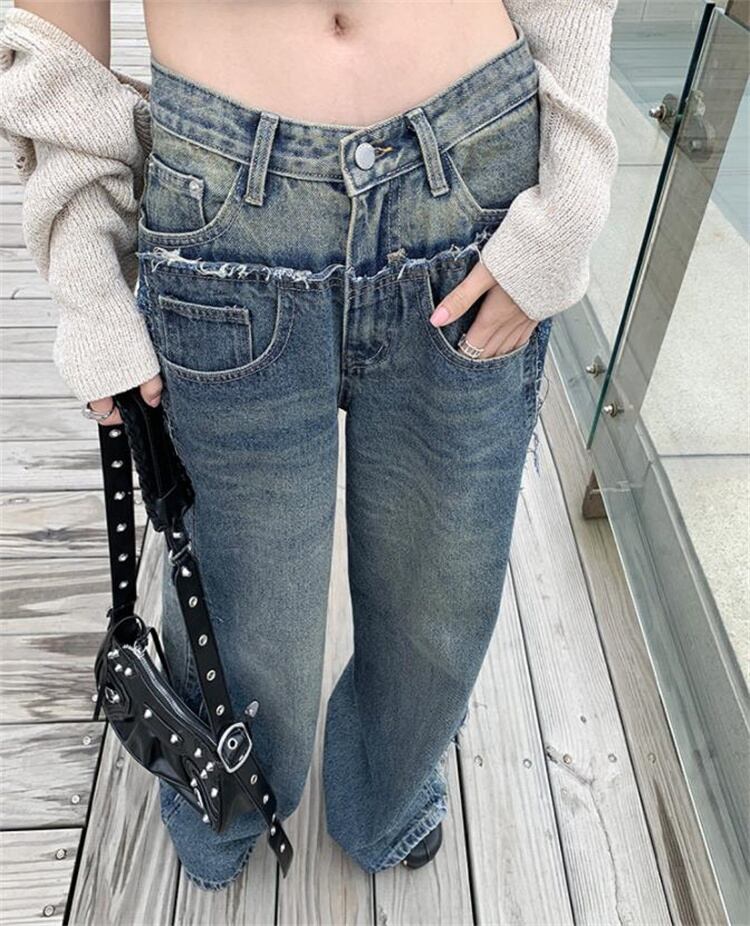 広く注目を集める 韓国ファッション 縫付 ジーンズ ワイドパンツ 大人気 ロングパンツ 快適である