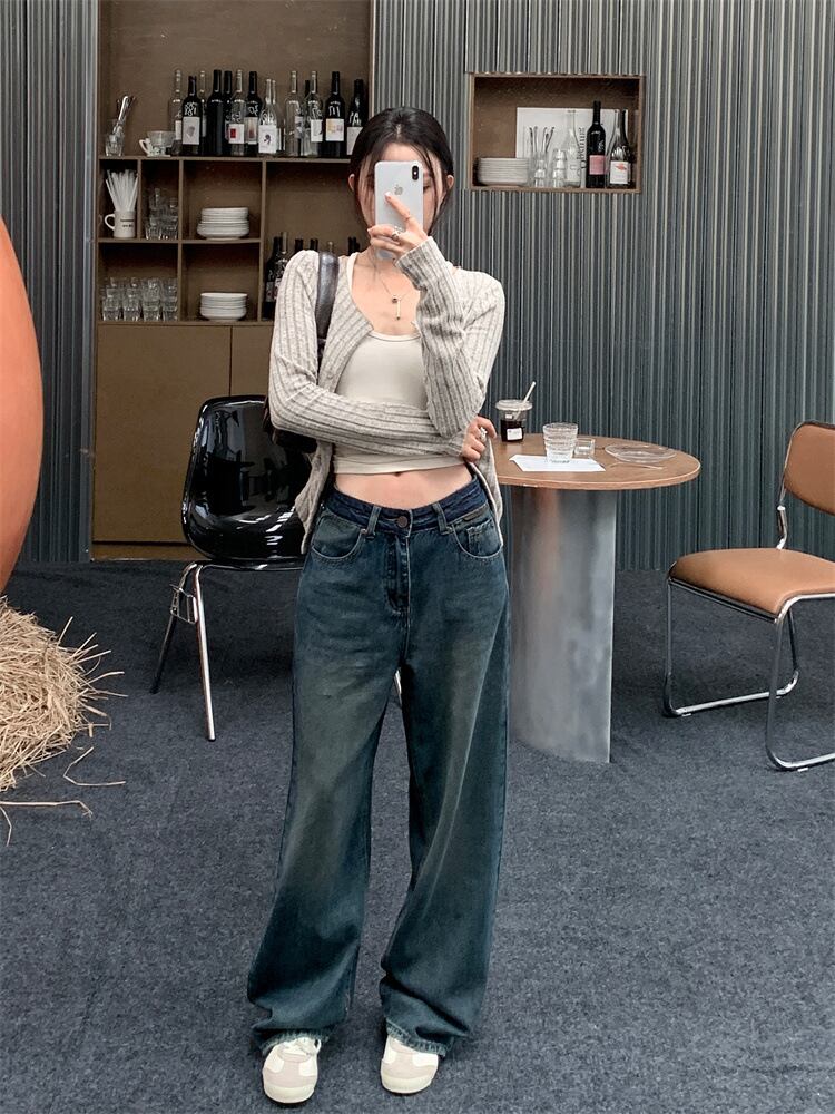 レデイース ボトムス ジーンズ シンプル 着痩せ ロング丈 カジュアル ハイウェスト 韓国風