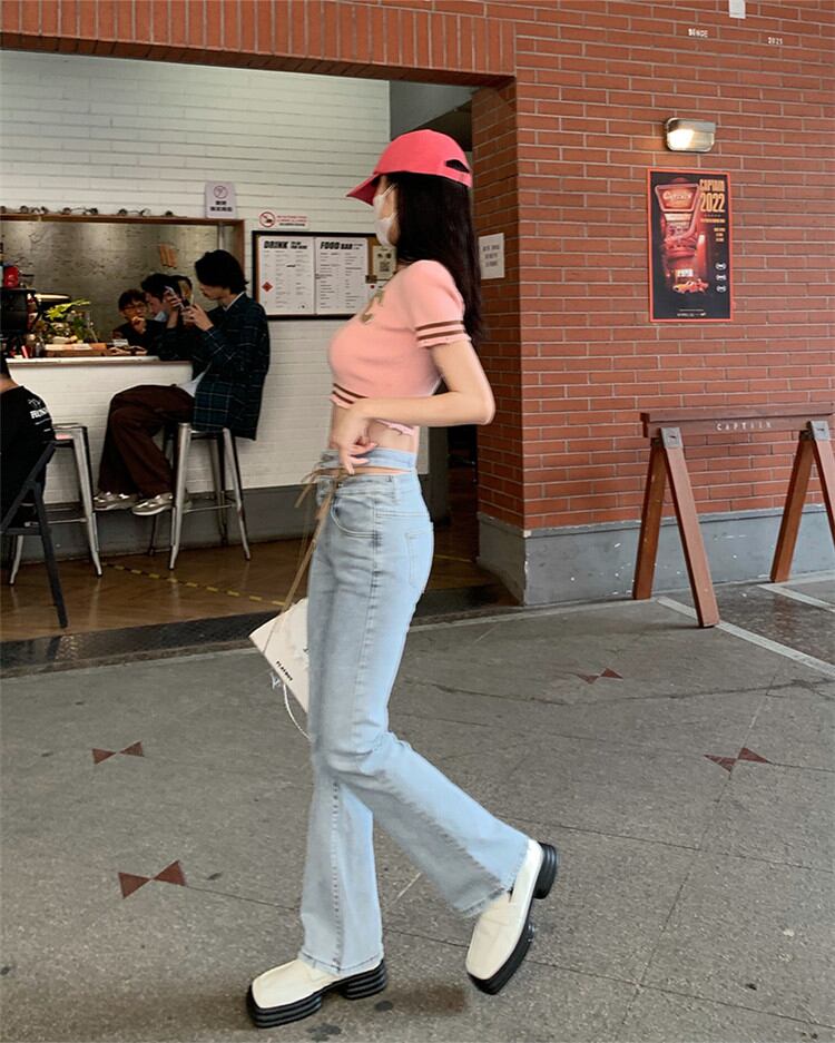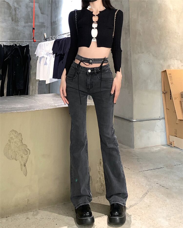 大人気 ダブルウエスト ジーンズ 女性 バンディング スリム マイクロホーン パンツ ハイウエス