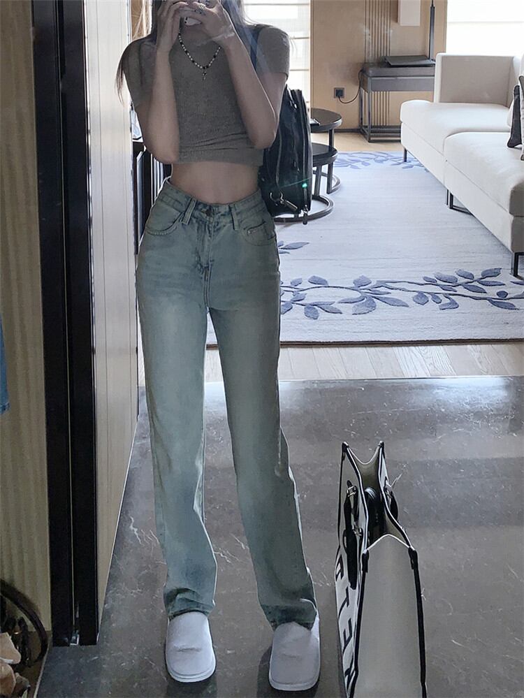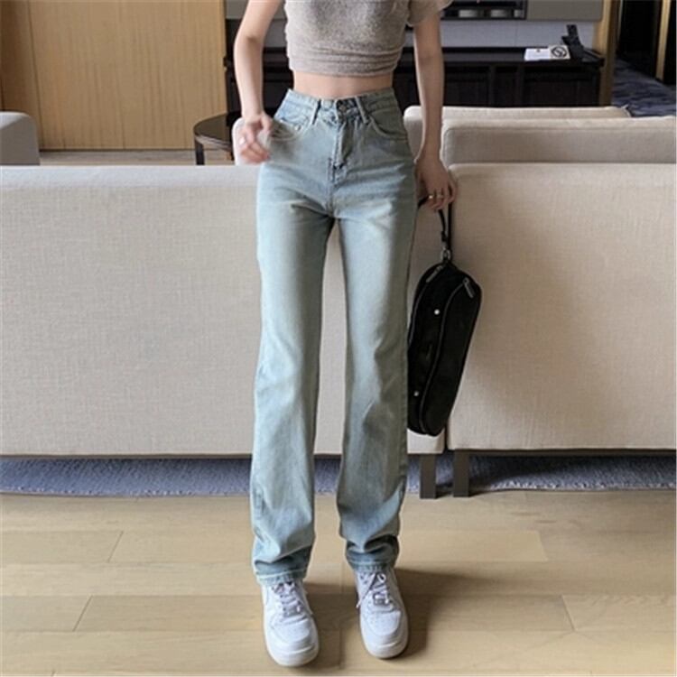 早い者勝ち シンプル ストレート パンツ ハイウエスト スリム デニム パンツ 女性