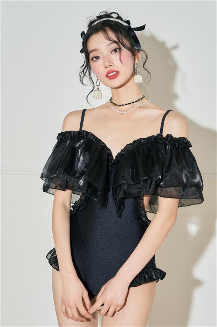 連体水着 水着 一字肩 フリル セクシー ストラップ スリム リゾート 温泉