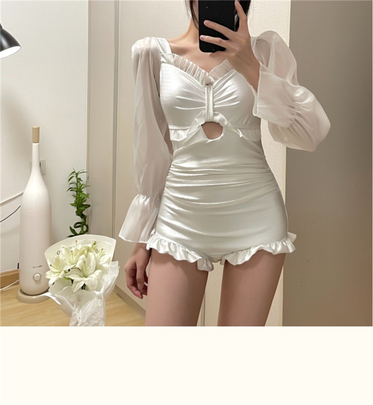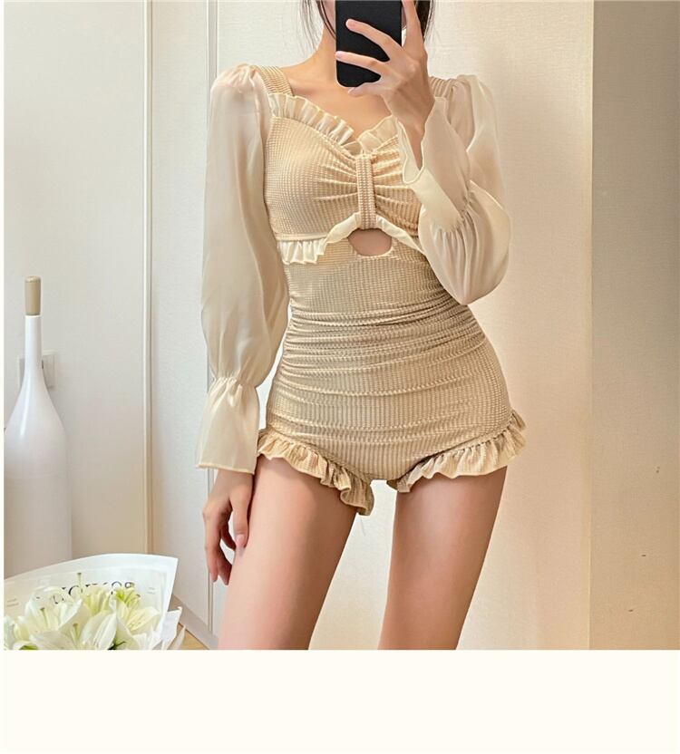 激安セール 2022新作 スリム 長袖 バンディング 背透けて Vネック 水着 トレンド 夏