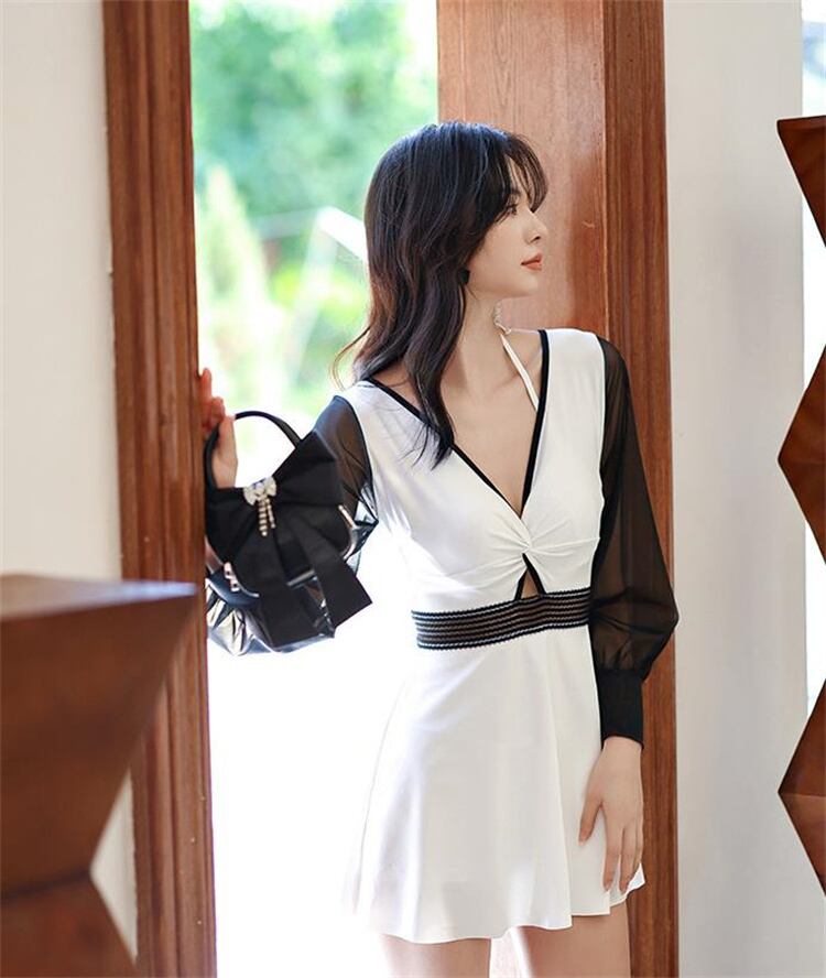 水着 薄手 ワンピース 保守的 温泉 長袖 深みのあるV セクシー 快適である