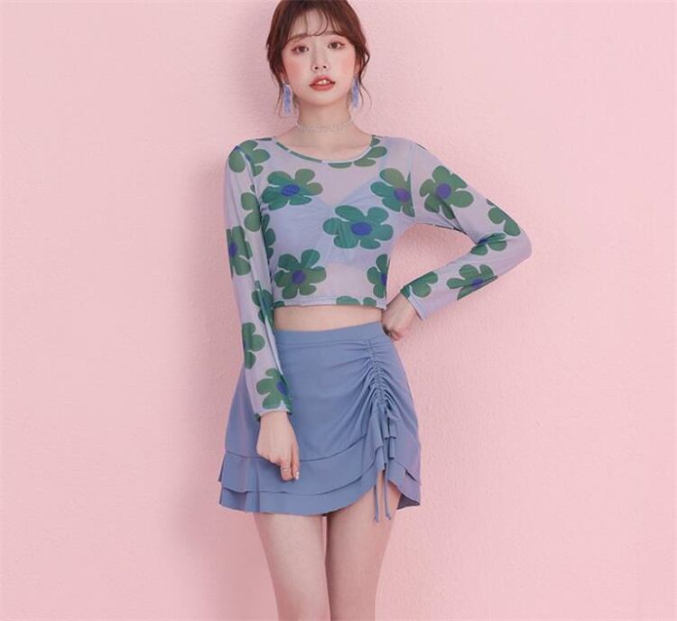 細見えする 温泉 長袖 フラットアングル フローラル 水着 3点セット 快適である★★ 水着 レディース おしゃれ ビーチ ビキニ リゾート プール 体型カバー スリム 可愛い インスタ映え セパレート 露出控えめ 盛れるハイウエスト 韓国 日焼け対策 競泳 スイムウェア日焼け防止 スタイルアップ 着痩せ
