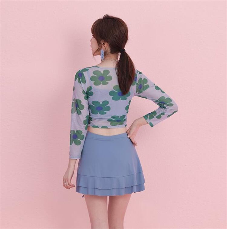 温泉 長袖 フラットアングル フローラル 水着 3点セット 快適である