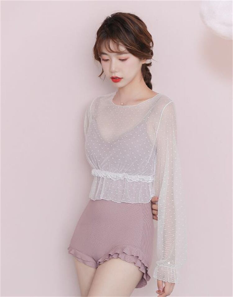 大人のカジュアルを提案 保守的 新品 温泉 水着 フラットアングル セット 長袖 ブラウス★★ 水着 レディース おしゃれ ビーチ ビキニ リゾート プール 体型カバー スリム 可愛い インスタ映え セパレート 露出控えめ 盛れるハイウエスト 韓国 日焼け対策 競泳 スイムウェア日焼け防止 スタイルアップ 着痩せ