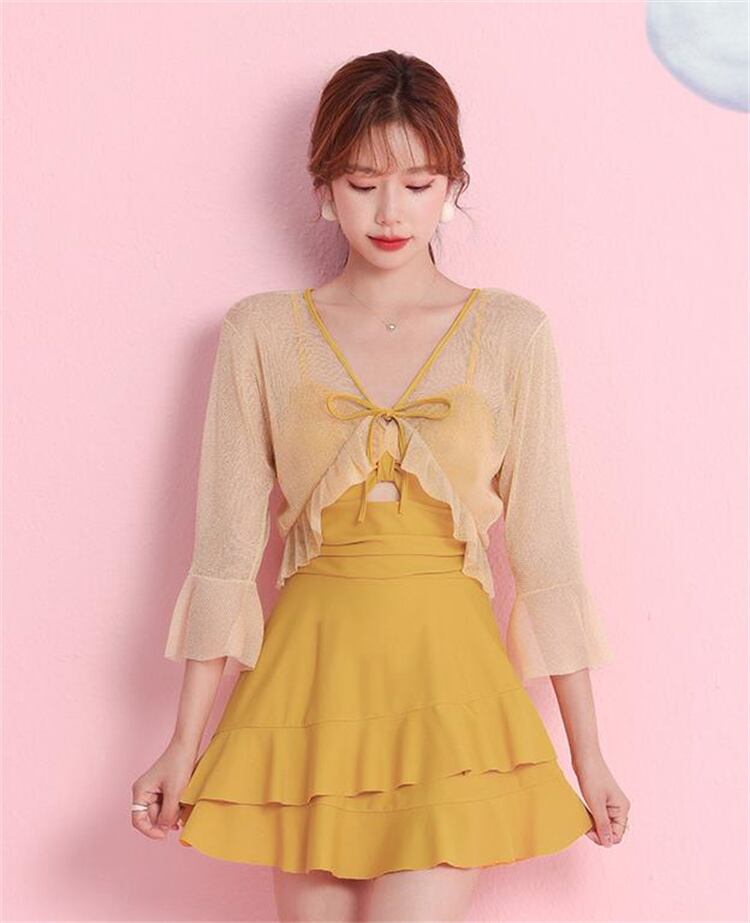 水着 カジュアル 温泉 気質 長袖 ピュアカラー ベアトップ