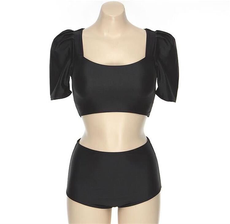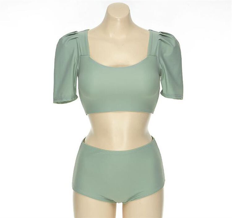 ファッション 水着 セクシー ハイウエスト 水泳 スパ パフスリーブ 背透けて