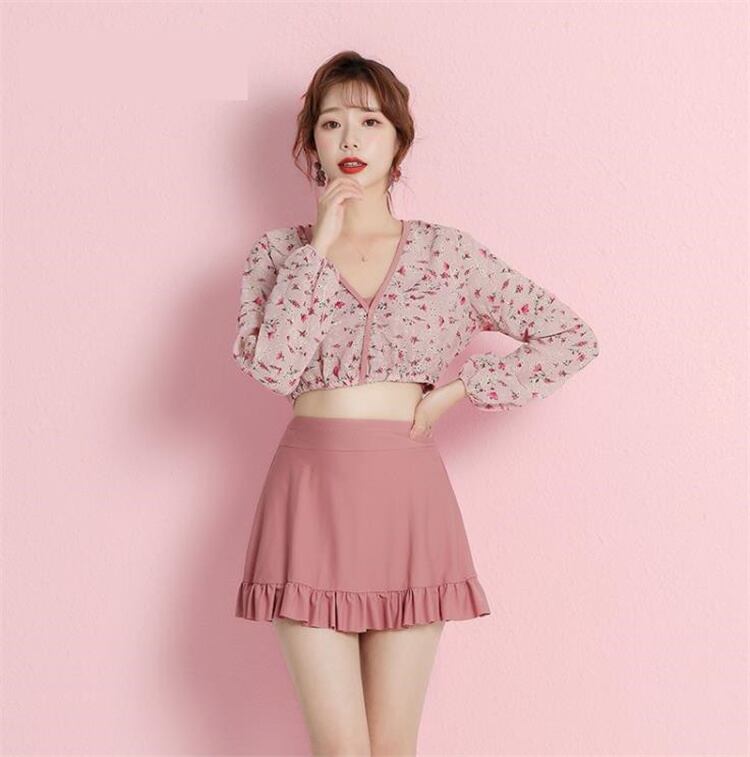 スリム スカート セット 気質 温泉 水着 新品 長袖 花柄