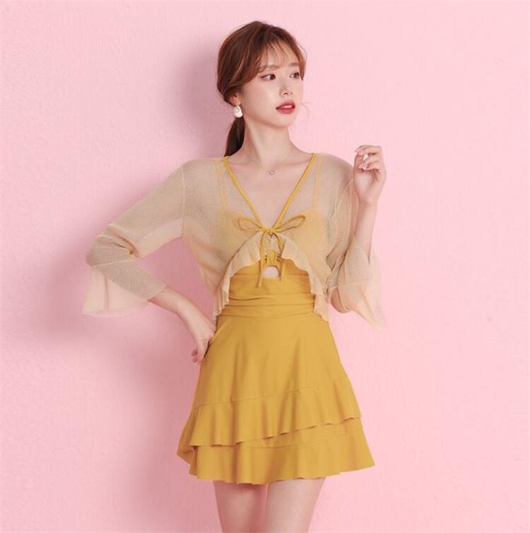 水着 カジュアル 温泉 気質 長袖 ピュアカラー ベアトップ