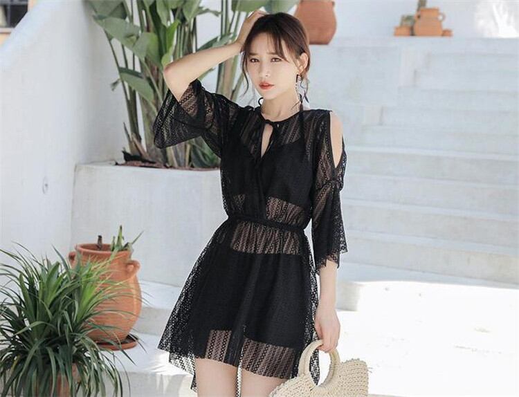 3点セット ハイウエスト スプリットスカート 温泉 水着 長袖 保守的 みずぎ 鋼托がある