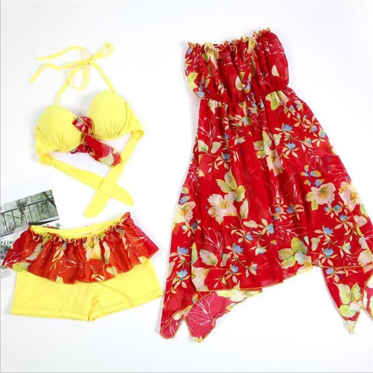 鋼托がある ビキニ ギャザー セクシー スリム 水着 ビーチ 3点セット