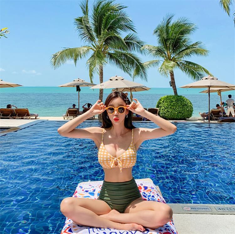 めっちゃかわいい!!黒と白 チェック柄 スプリット 水着 セクシー ギャザリング スリム ビキニ★★ 水着 レディース おしゃれ ビーチ ビキニ リゾート プール 体型カバー スリム 可愛い インスタ映え セパレート 露出控えめ 盛れるハイウエスト 韓国 日焼け対策 競泳 スイムウェア日焼け防止 スタイルアップ 着痩せ