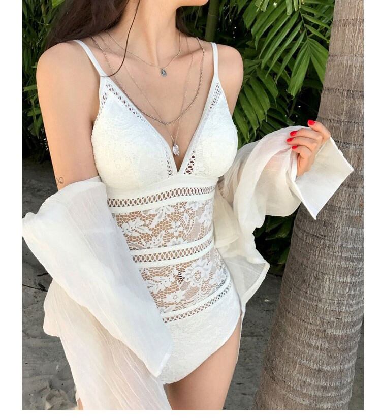 女性 ワンピース水着 温泉 巨乳 カバー腹 縫付 レース スリム セクシー ギャザリング お出かけ ビキニ