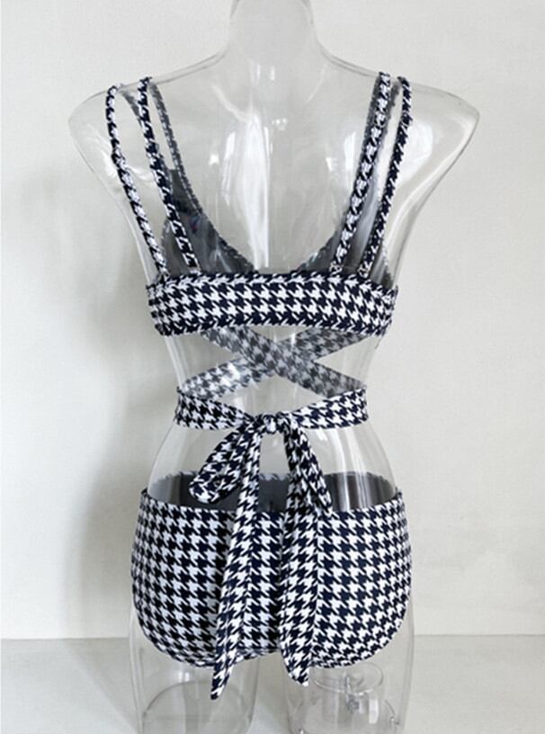 レトロな雰囲気の千鳥格子柄がおしゃれで可愛いショーツのタイプが選べる水着2点セット!■素材:ポリアミド+ポリウレタン