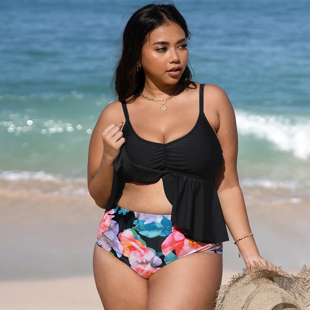 調味料 ツーピースの女性用ビキニ,花柄の水着,タンキニ,ハイウエスト,ラージサイズ セパレート水着 ビキニ レディース T240618202421_01