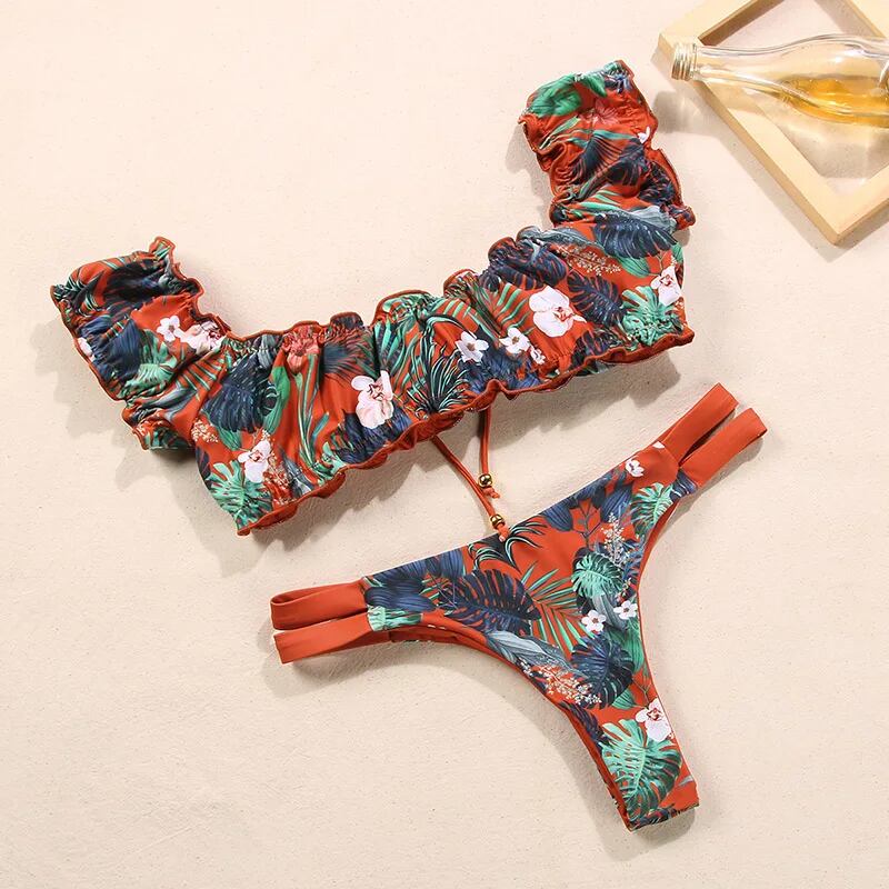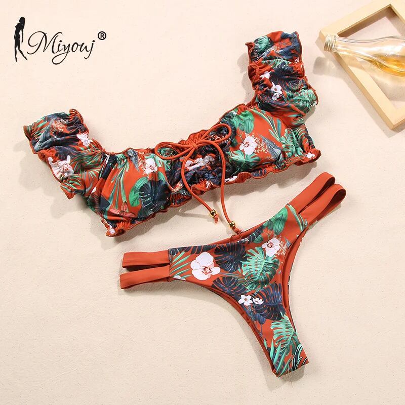 Miyouj 女性のためのブラジルの水着,裸の肩のビキニセット,腕立て伏せ,フラウンス,包帯スタイル,セクシー セパレート水着 ビキニ レディース T240618202826_01