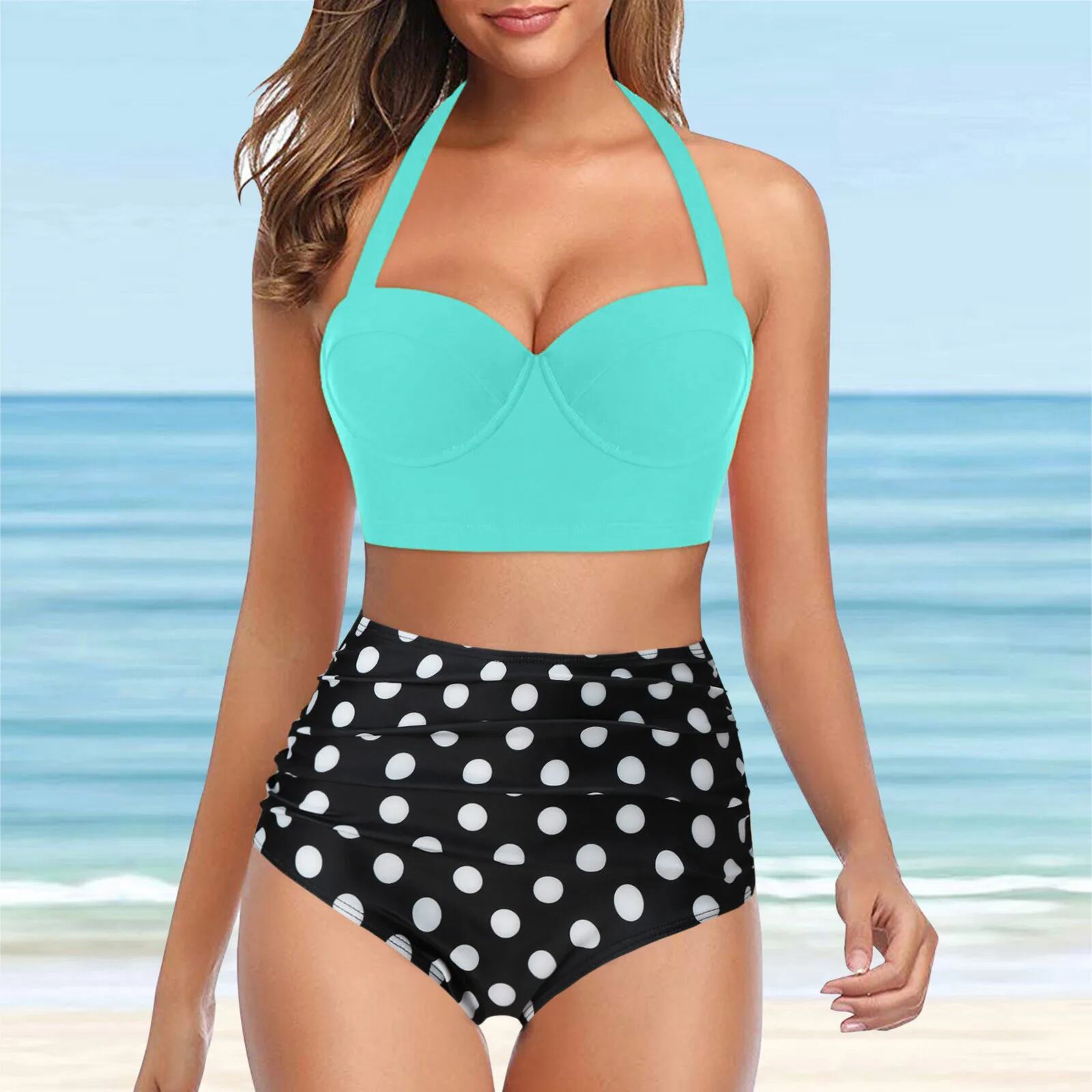 女性用レトロプリントビキニ,水玉水着,ショーツ,腕立て伏せ,ハイウエスト,2022 セパレート水着 ビキニ レディース T240618202829_02