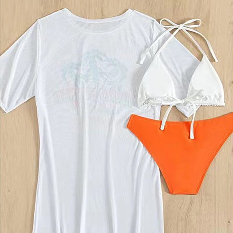 女性用透明プリント水着,セクシー水着,Tシャツカバーアップ,ホルターブラ,パンティーセット,ビーチビキニ,下着,3枚,夏 セパレート水着 ビキニ レディース T240618203933_02
