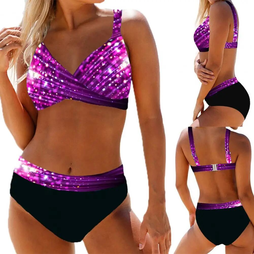 クロスVネックビキニセット,女性用ホルターネックビキニ,背中の開いた水着,調節可能なショルダーストラップ,水活動用水着,2個セット セパレート水着 ビキニ レディース T240618204225_02