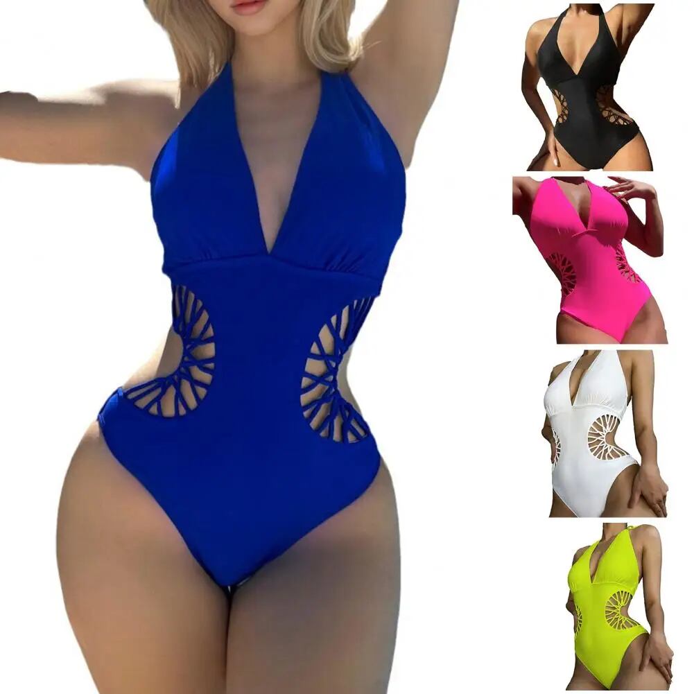 女性のためのモノキニ透かし彫り水着、モノキニ、伸縮性のあるハイウエスト水着、パッド入り水着、女性の水着、サーフィン服、ディープvネック セパレート水着 ビキニ レディース T240618204250_02