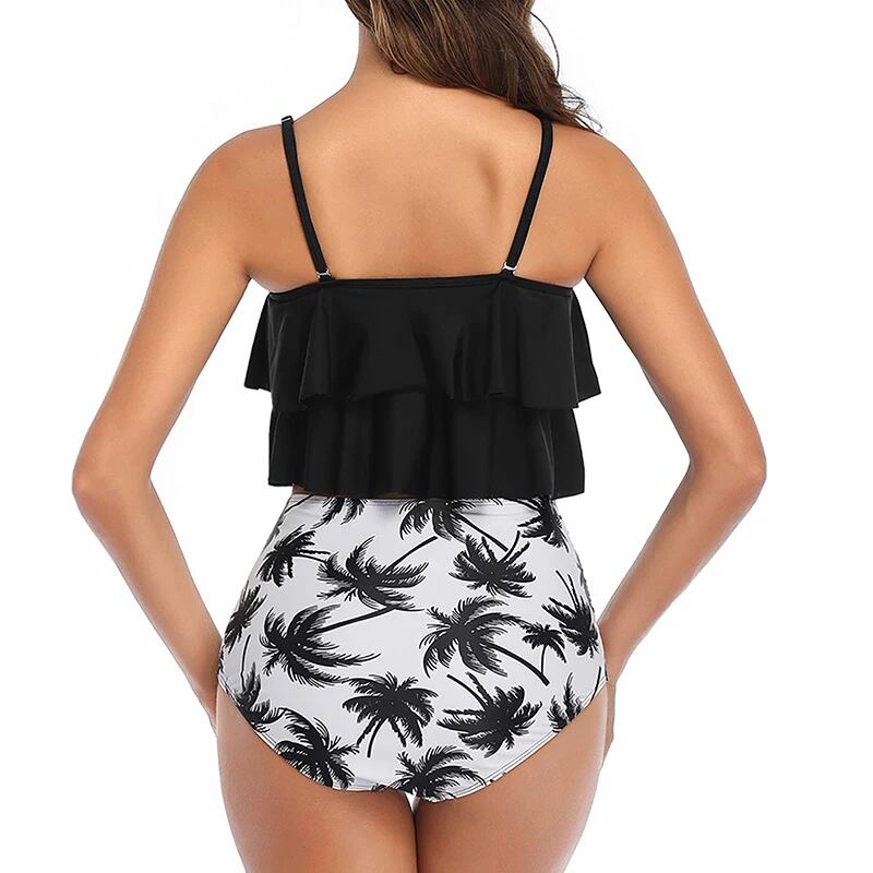 女性用ツーピース水着,ダブルフラウンストップ,ハイウエスト,ギャザーボトム,タンキニ,水着 セパレート水着 ビキニ レディース T240618204429_01