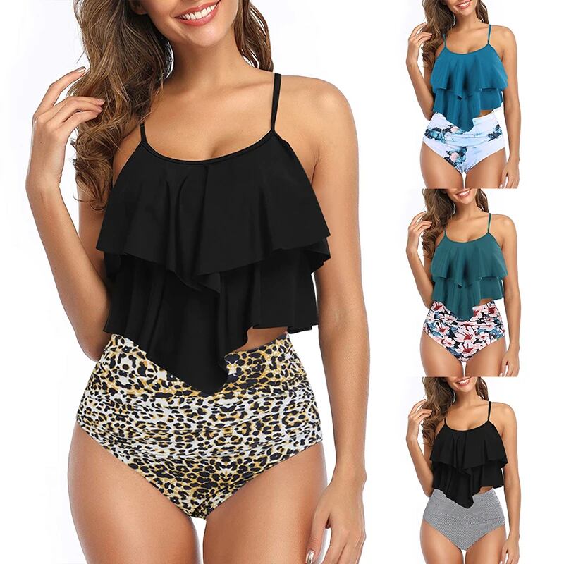 女性用ツーピース水着,ダブルフラウンストップ,ハイウエスト,ギャザーボトム,タンキニ,水着 セパレート水着 ビキニ レディース T240618204429_09