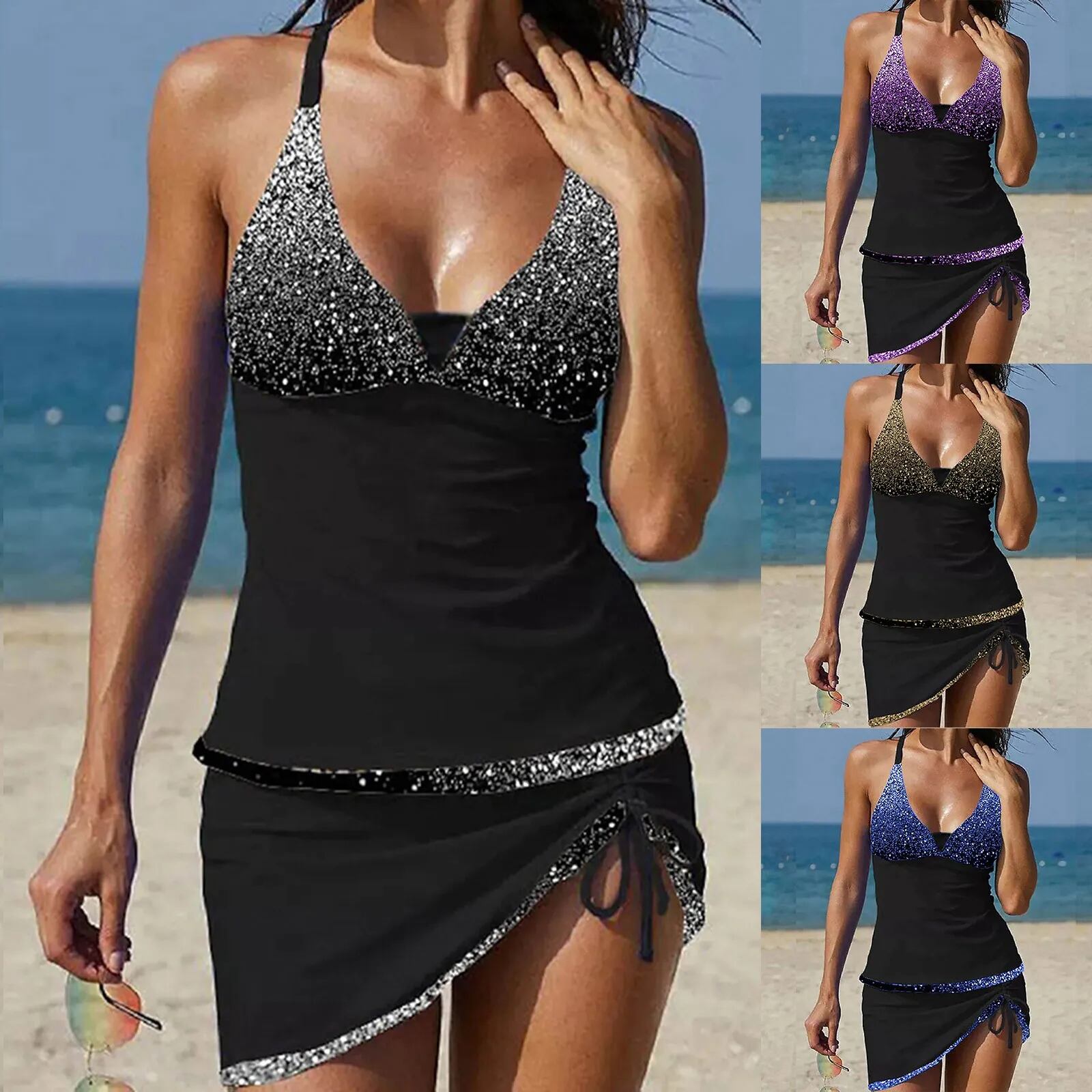 女性用スパンコールプリント水着,タンキニ,腕立て伏せ,ビーチウェア,サーフィン,トレンディ,2ユニット セパレート水着 ビキニ レディース T240618204458_04