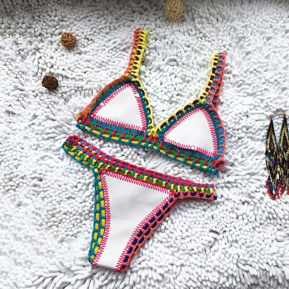 ビキニ2022 2ピース/セット水着明るい色パッチワークかぎ針編みの女性水着ビーチでの休暇セクシーな夏の水着 ビキニ Tシャツ T240618232627_04