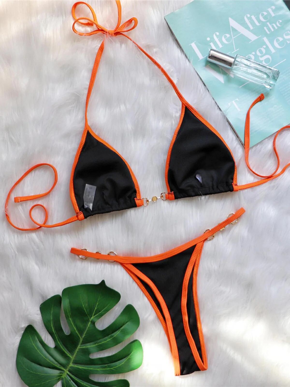 女性用ツーピースリブビキニセット,ホルターネック,スプライシング,水着,水泳,5色,k4392 ビキニ Tシャツ T240618232749_01