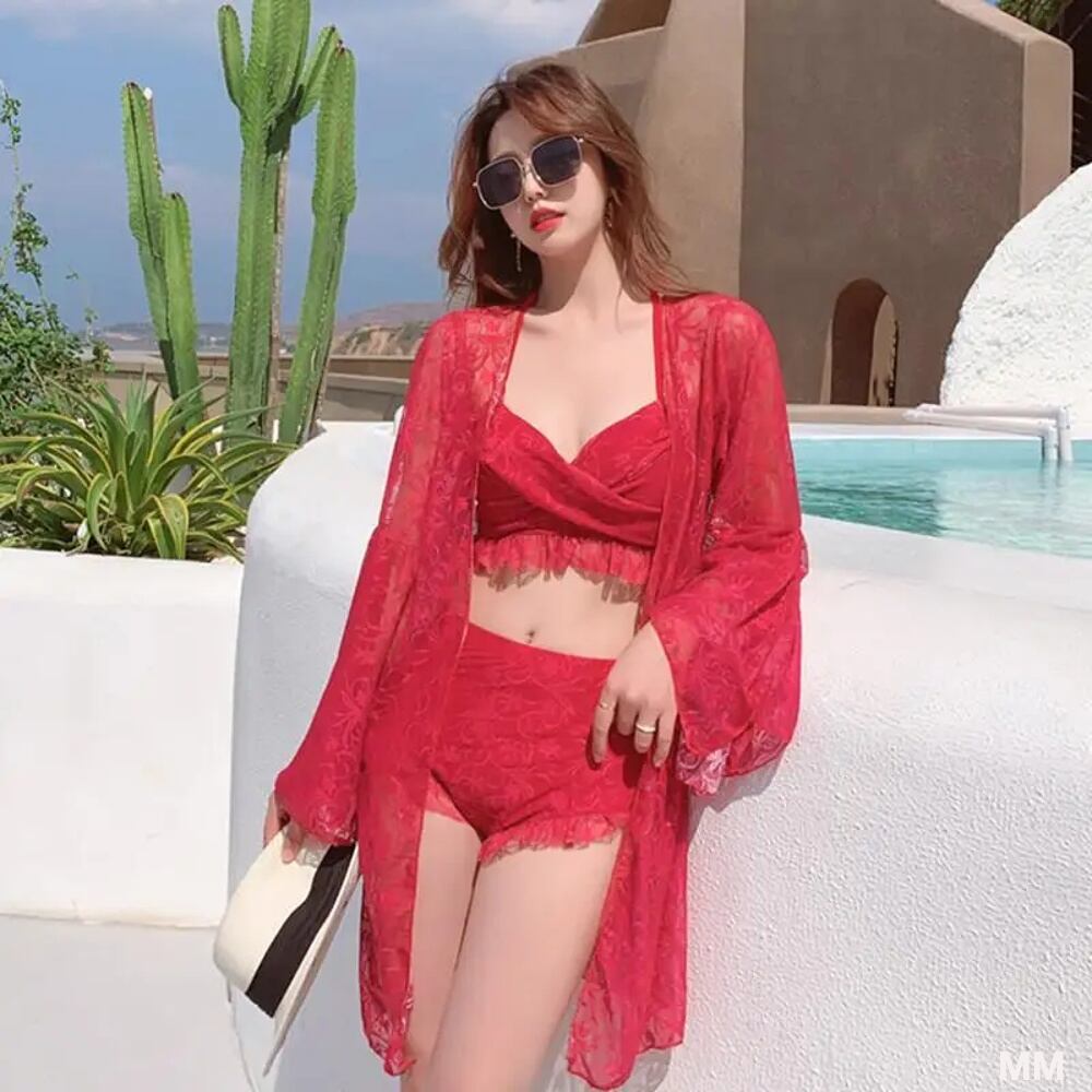 女性のための妖精スタイルのスリーピースビキニセット,セクシー,カジュアル,韓国スタイル,長袖,レース,ビーチウェア,エレガント,甘いファッション,夏|ビキニセット| 韓国系水着 セパレート水着 ワンピース水着 T240626112739_03