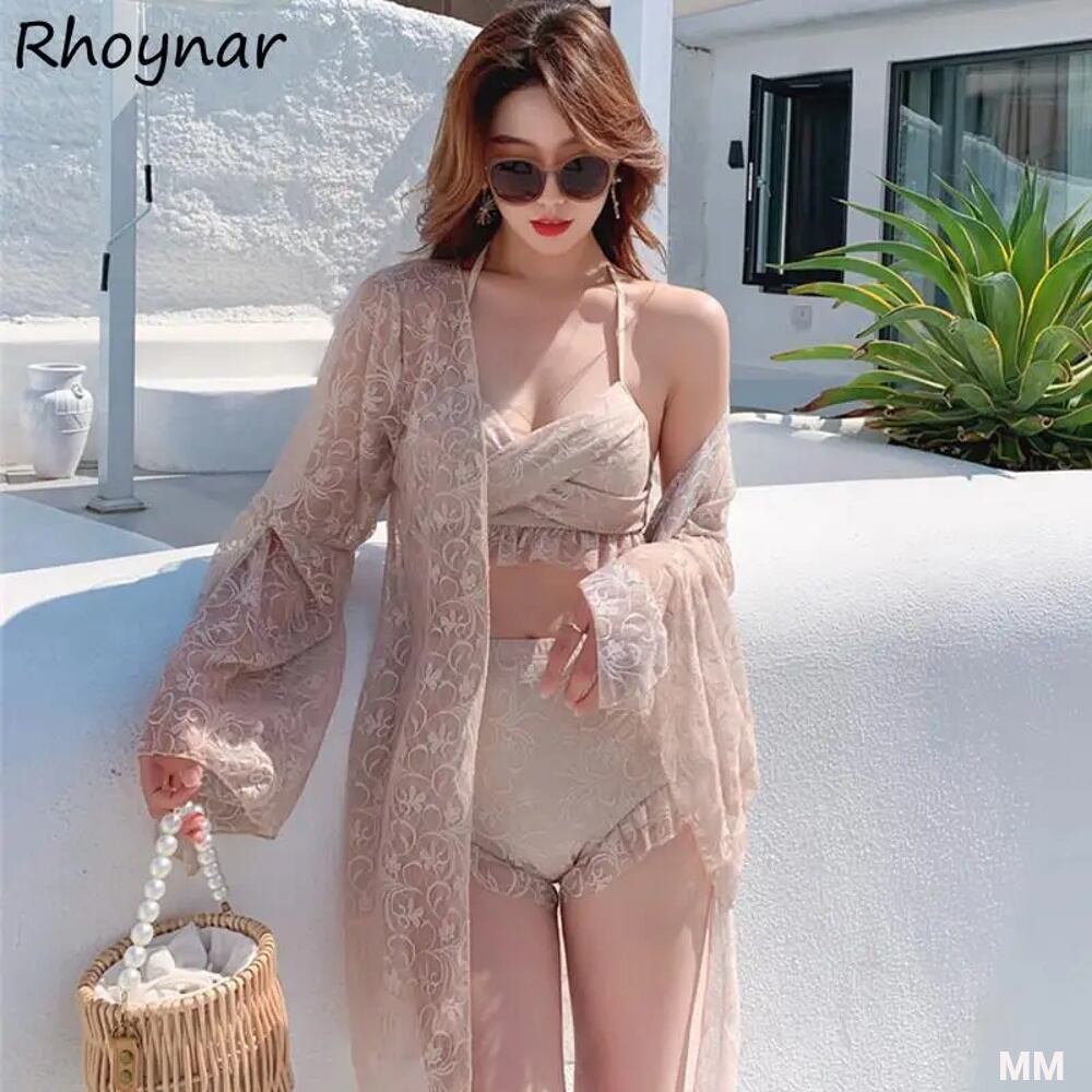 女性のための妖精スタイルのスリーピースビキニセット,セクシー,カジュアル,韓国スタイル,長袖,レース,ビーチウェア,エレガント,甘いファッション,夏|ビキニセット| 韓国系水着 セパレート水着 ワンピース水着 T240626112739_04