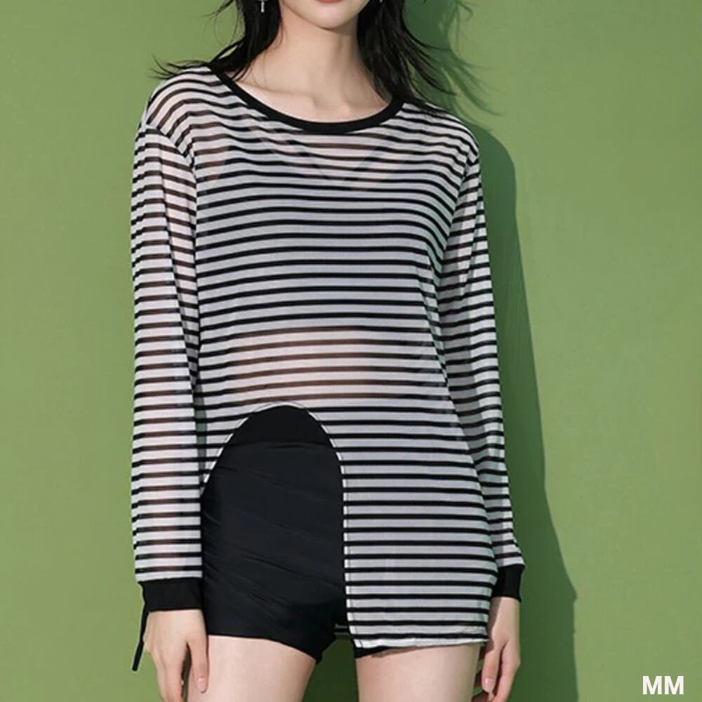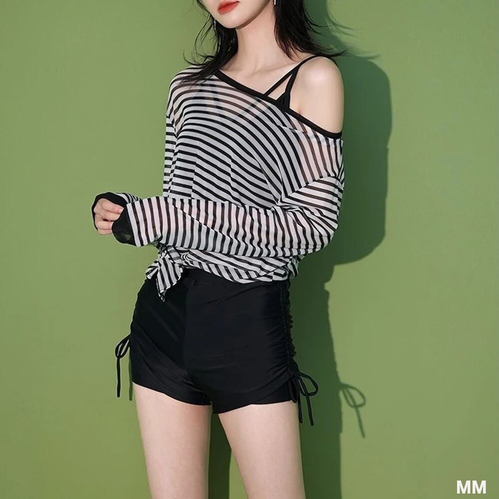 女性用3ピースストライプビキニセット,韓国スタイル,セクシー,縞模様,長袖,十分な,ビーチウェア,水着,2023 韓国系水着 セパレート水着 ワンピース水着 T240626112919_01
