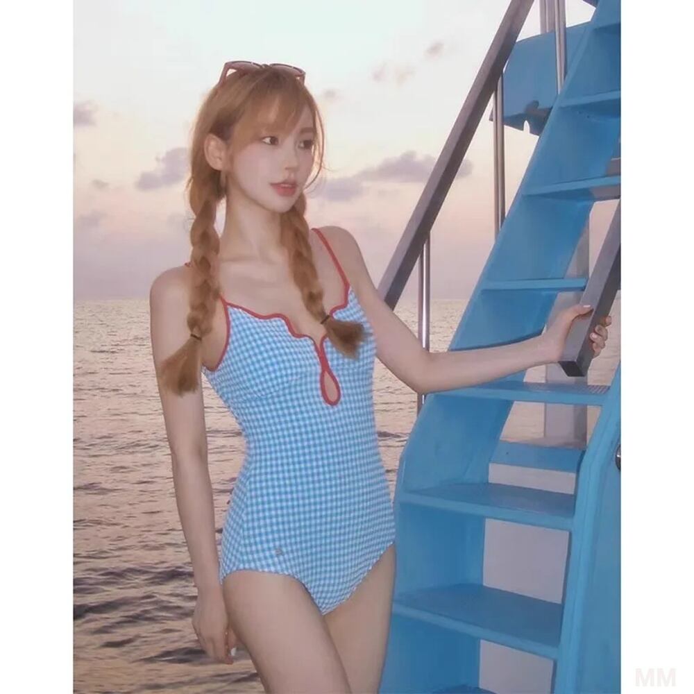 女性のためのセクシーな市松模様の水着,韓国スタイルのビーチウェア,大きなストラップ,女性のためのバスセット,パッド入りボディ,2021, 1個 韓国系水着 セパレート水着 ワンピース水着 T240626112931_01