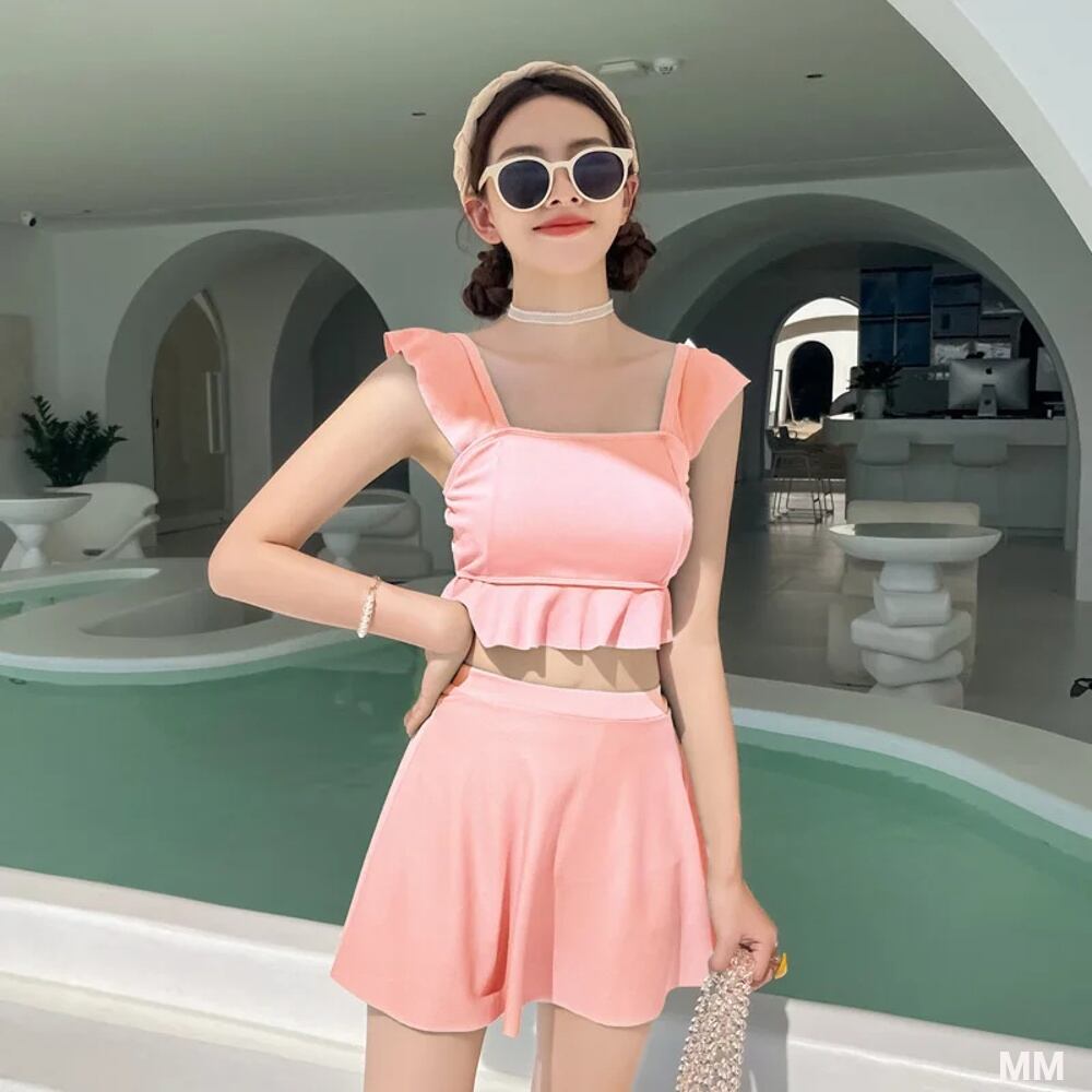 女性用ツーピースフリルチェック水着,ビーチウェア,ハイウエスト,和風,韓国スタイル 韓国系水着 セパレート水着 ワンピース水着 T240626112939_05