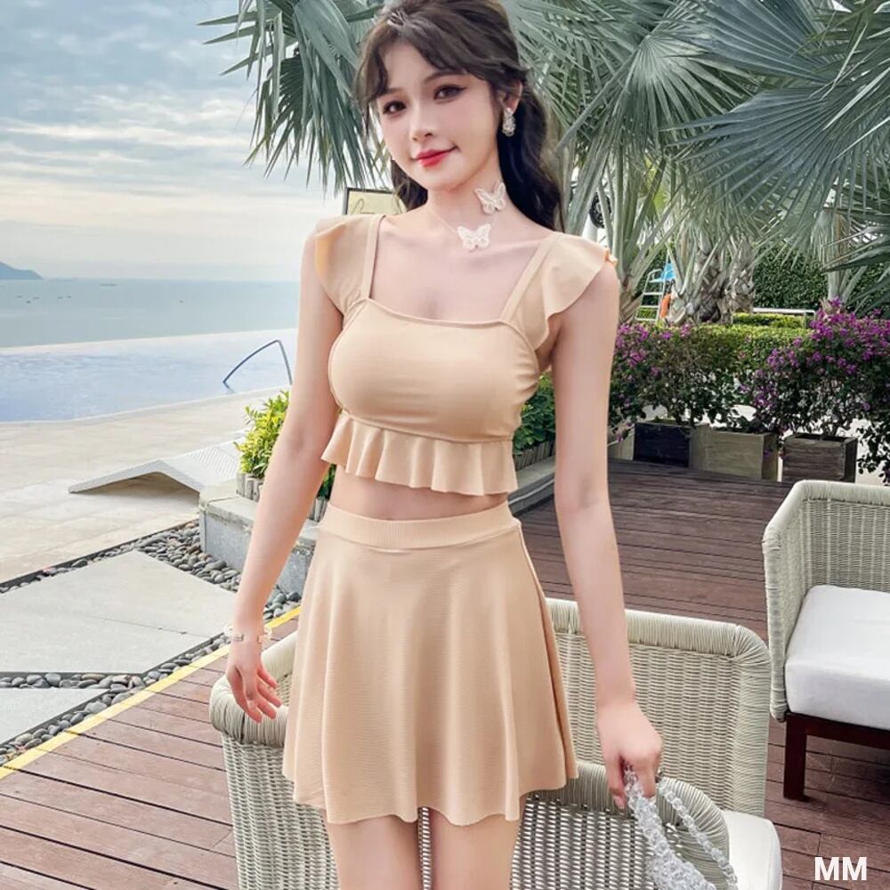 女性用ツーピースフリルチェック水着,ビーチウェア,ハイウエスト,和風,韓国スタイル 韓国系水着 セパレート水着 ワンピース水着 T240626112939_06