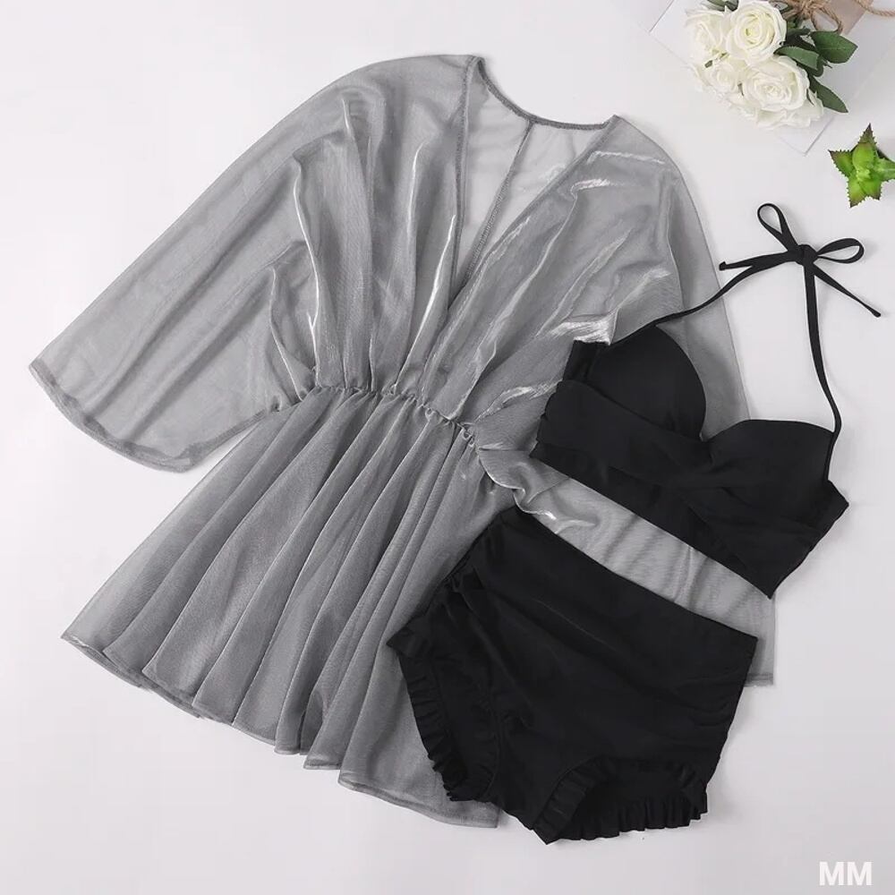 女性用メッシュカバーアップ水着、独立した水着、ビーチウェア、休暇、onsen水着、韓国、新しい3個セット、2024 韓国系水着 セパレート水着 ワンピース水着 T240626112957_02