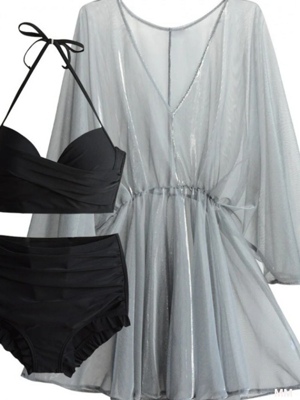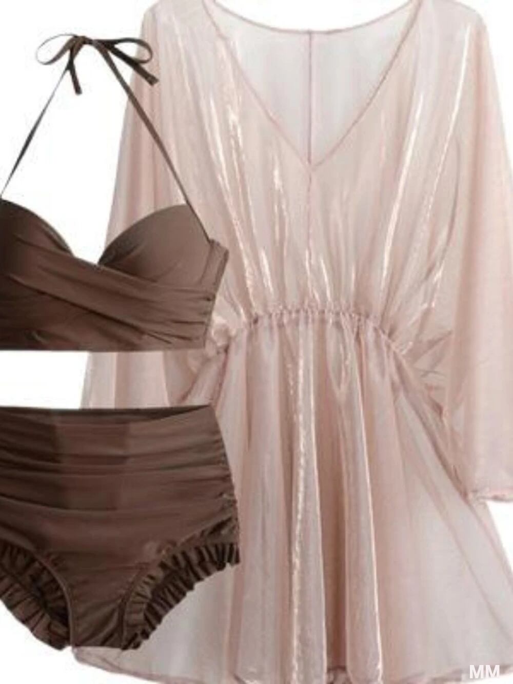 Bikinis 女性用の3ピースの妖精の水着,学生用のへそが付いた女性用水着のセット 韓国系水着 セパレート水着 ワンピース水着 T240626113031_01