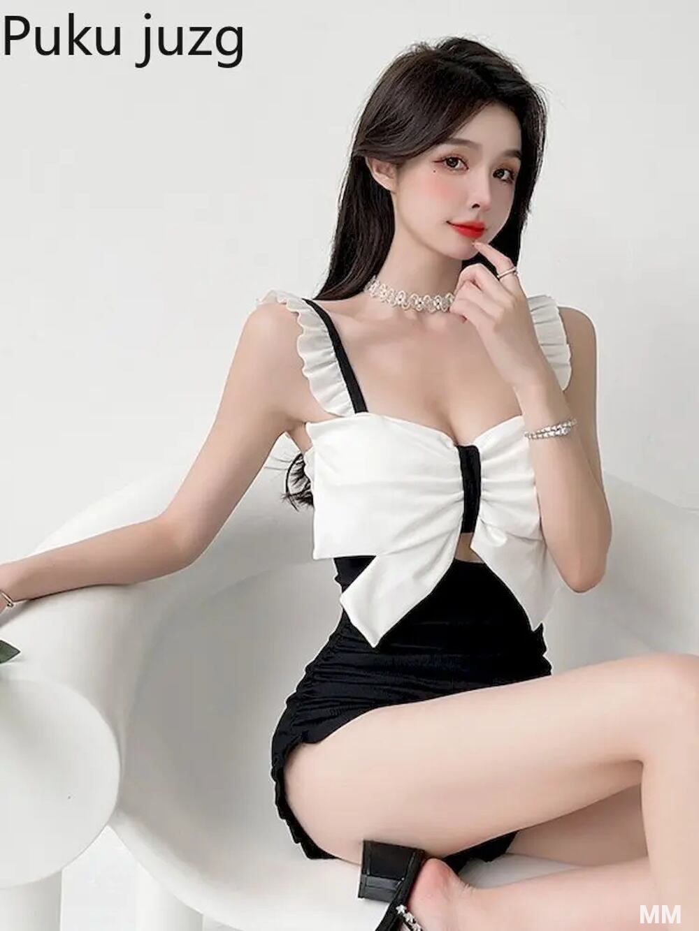 Pudkujzg ネクタイ付き水着,女性用ワンピース水着,韓国バスセット,春,ビーチウェア2022 韓国系水着 セパレート水着 ワンピース水着 T240626113037_01