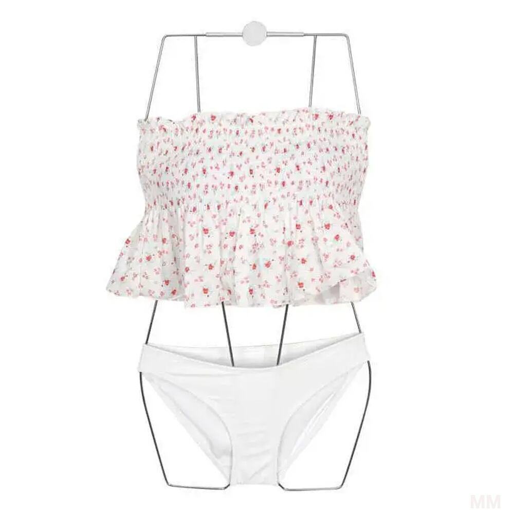 女性のためのセクシーなプリーツビキニ,花柄の水着,ショートトップビキニ,おなかコントロール,パッド付き韓国水着 韓国系水着 セパレート水着 ワンピース水着 T240626113040_01