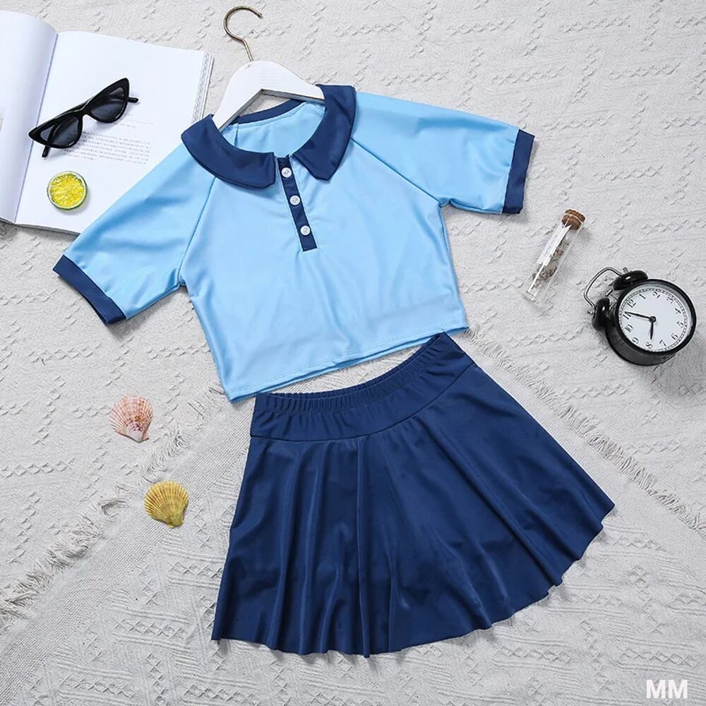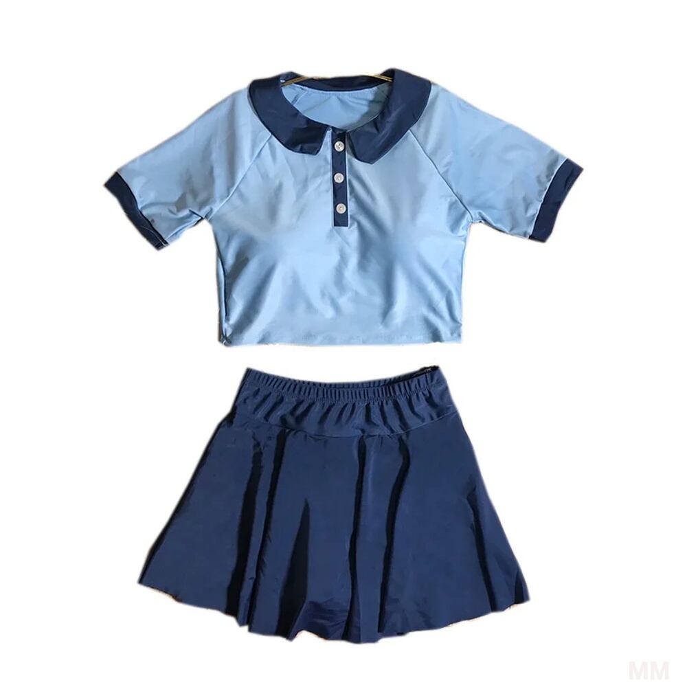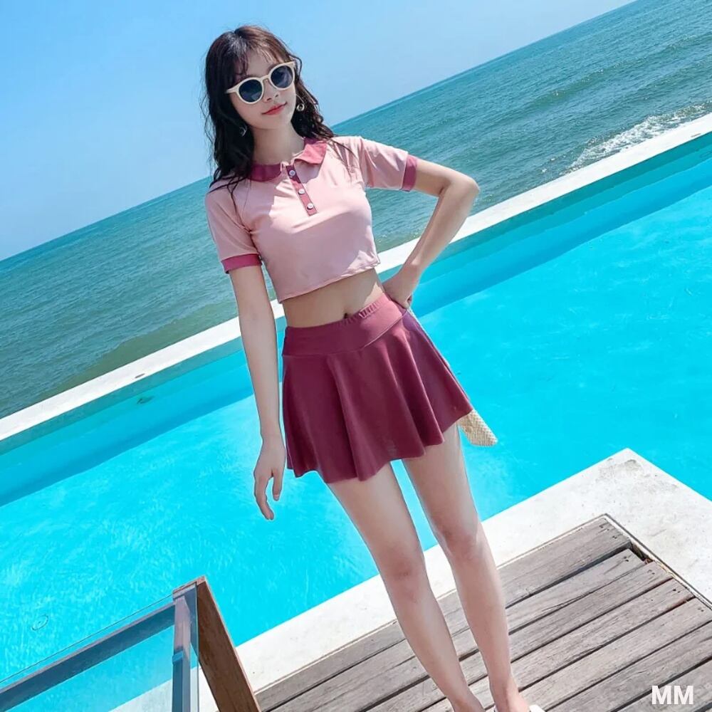 女性用単色ビキニ,韓国の水着,ハイカラー,半袖,クロップトップ,スカートスーツ,ビーチウェア,水着,女の子,新しいコレクション2022 韓国系水着 セパレート水着 ワンピース水着 T240626143858_01
