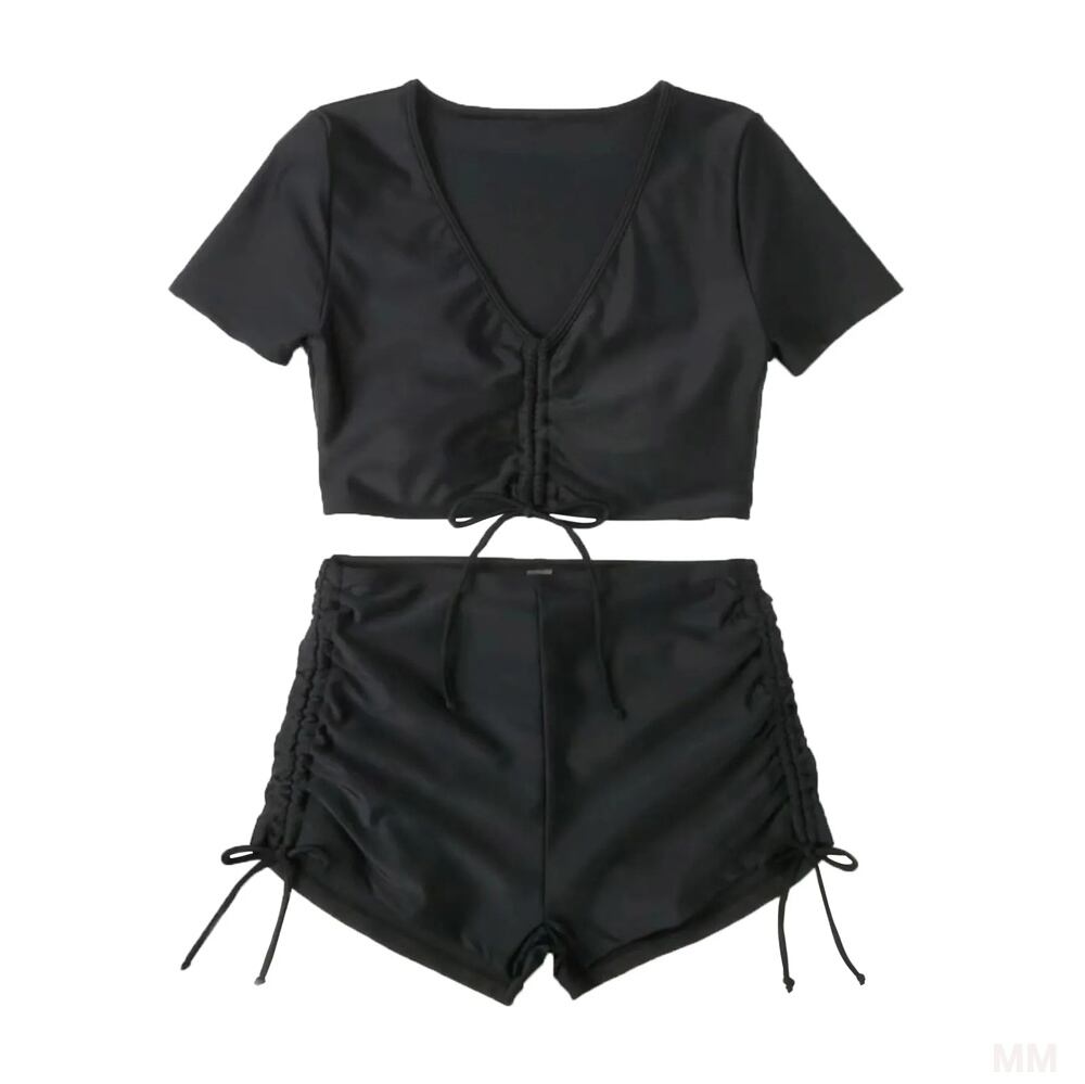 韓国レースアップバススーツ、ハイウエストビキニ、結び目スクープネック水着、y2k衣類、2個、2022 韓国系水着 セパレート水着 ワンピース水着 T240626143911_01