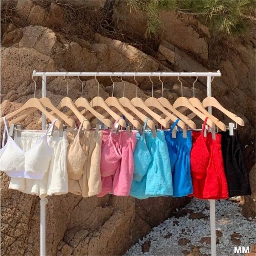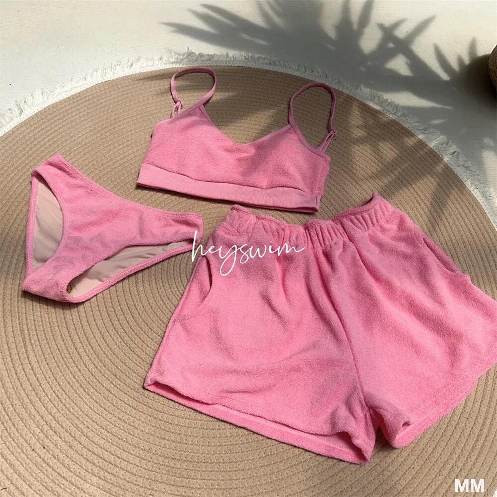 女性用3ピーススプリット水着、単色、Vネック、ビキニ、タオル素材、中断されたタンクトップ、弾性ウエストショーツ、水着、韓国、2022 韓国系水着 セパレート水着 ワンピース水着 T240626160428_03