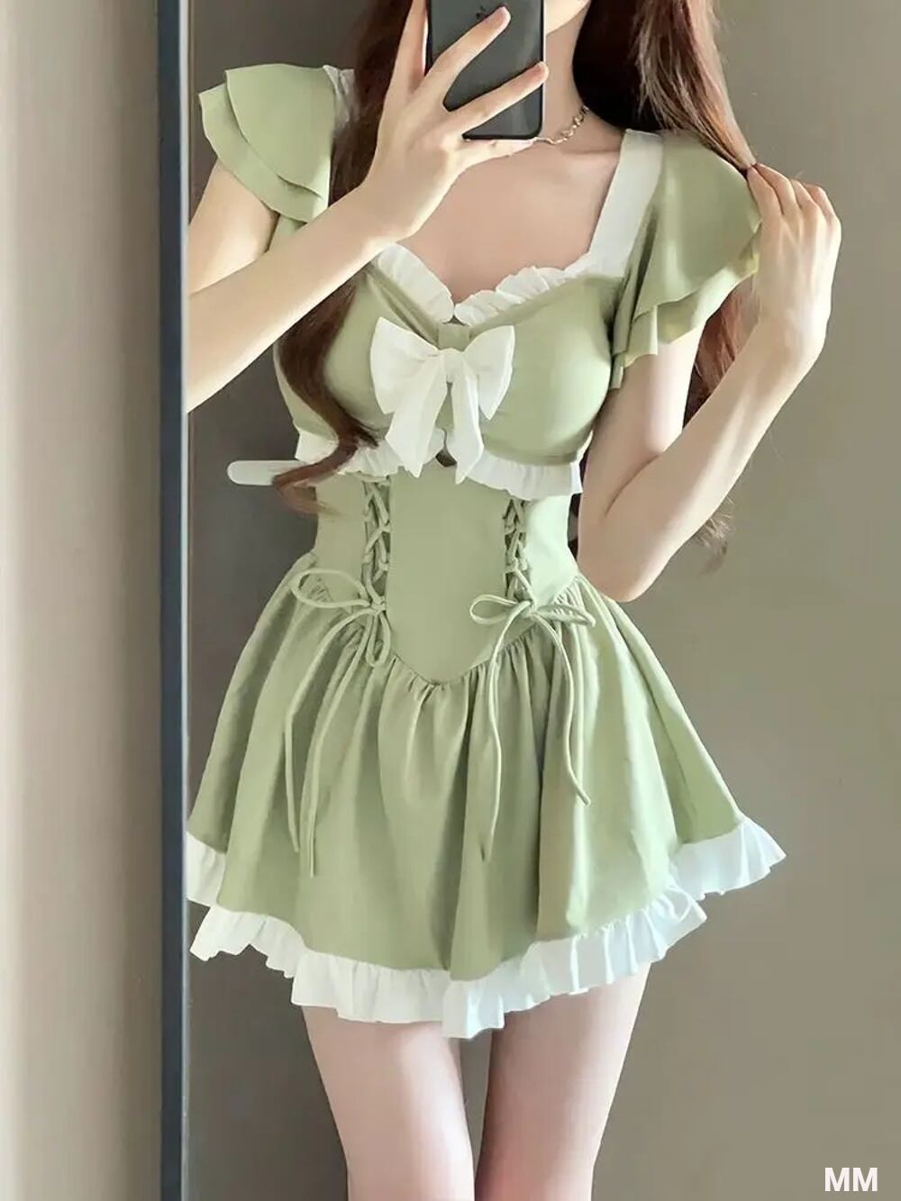 女性のためのセクシーなビーチドレス,韓国スタイル,痩身フリル水着,ワンピース水着,ビキニ 韓国系水着 セパレート水着 ワンピース水着 T240626104650_02